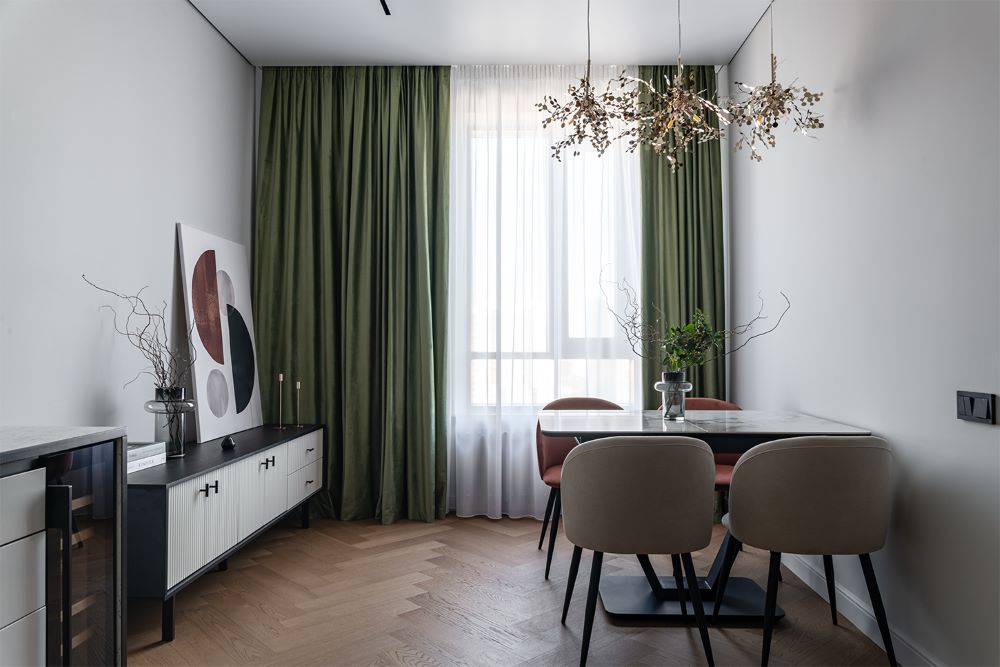 Благодаря этому все комнаты перекликаются между собой, в то же время каждая из них несёт свое настроение и атмосферу.